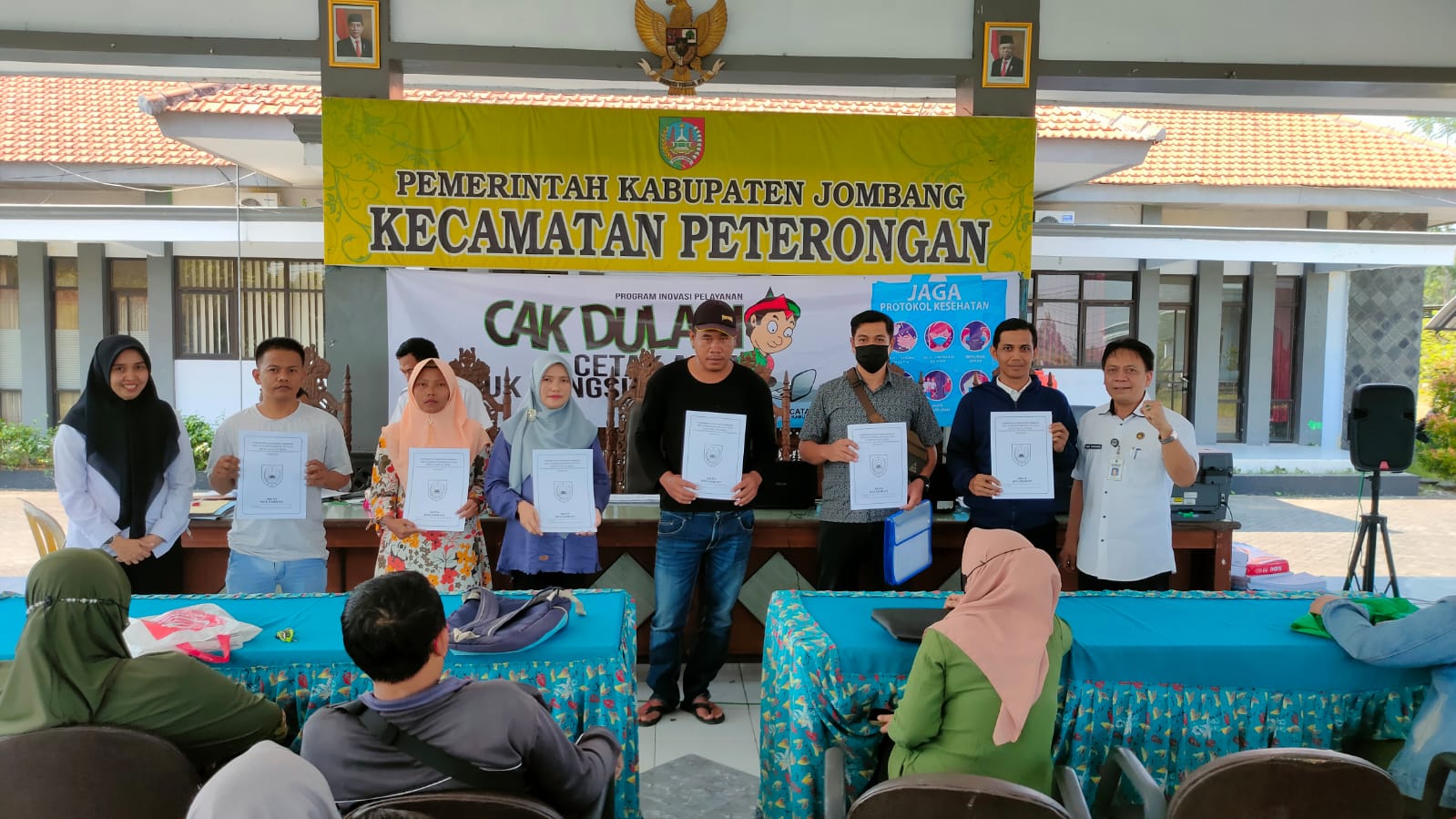 Inovasi layanan jemput bola Akta yaitu CAK DULADI (CETAK AKTA DUDUK LANGSUNG JADI) kembali dilaksanakan di Kecamatan Peterongan pada hari Kamis, (31/05). Masyarakat sangat antusias menanti petugas pelayanan dari Dukcapil Jombang mereka merasa sangat terbantu dengan adanya layanan jemput bola ini.