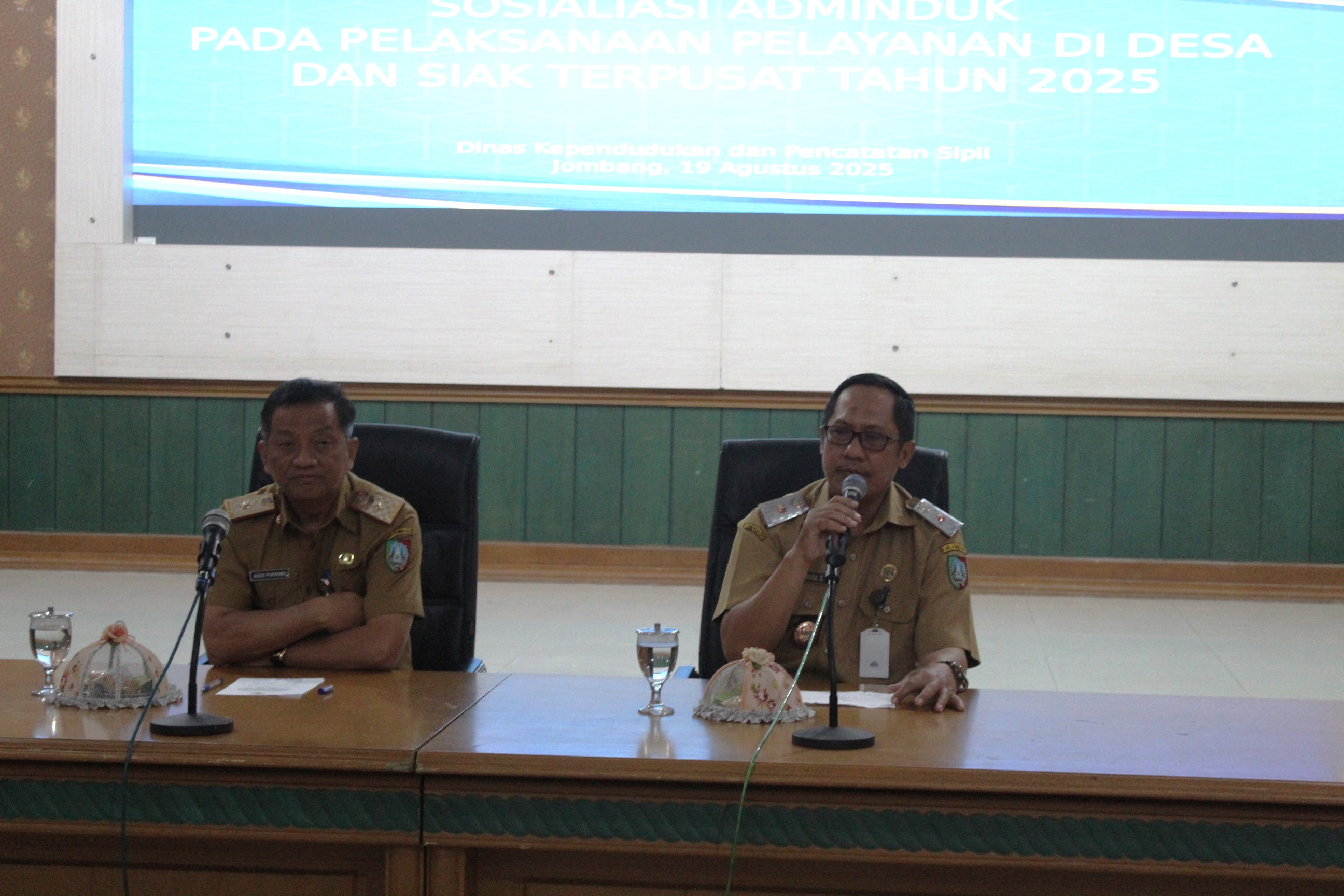 Upaya meningkatkan kualitas pelayanan administrasi kependudukan (Adminduk) terus dilakukan Dinas Kependudukan dan Pencatatan Sipil (Dispendukcapil) Kabupaten Jombang. Dispendukcapil menggelar acara Sosialisasi Administrasi Kependudukan layanan tingkat Desa dan SIAK Terpusat 2025 pada Selasa (19/8). Acara ini digelar di Ruang Bung Tomo, Kantor Pemkab Jombang. dan menghadirkan para Sekretaris Kecamatan serta operator desa, khususnya dari wilayah yang pelayanannya masih belum maksimal. Acara ini dipimpin langsung oleh Kepala Dispendukcapil Jombang, Drs. Masduqi Zakaria, M.Si, beserta para Kepala Bidang (Kabid) sebagai narasumber.