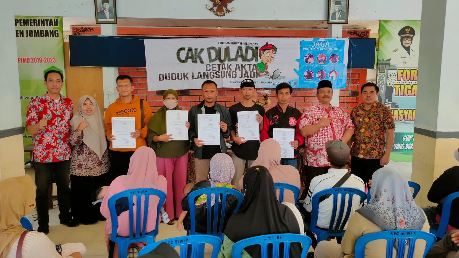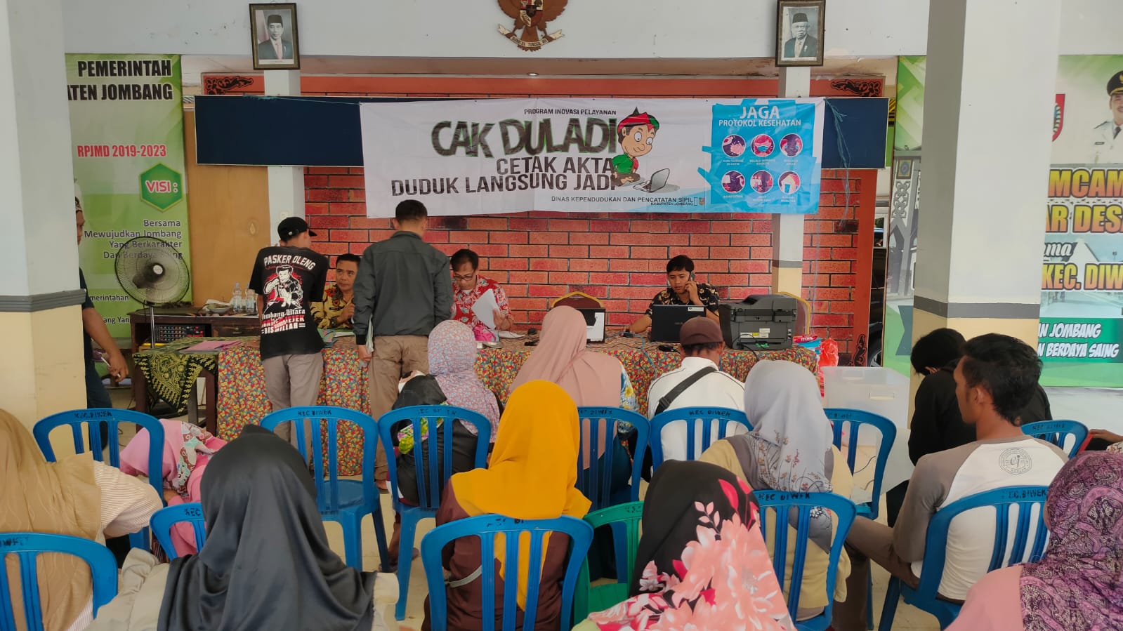 Inovasi layanan jemput bola Akta yaitu CAK DULADI (CETAK AKTA DUDUK LANGSUNG JADI) kembali dilaksanakan di Kecamatan Diwek pada hari Senin, (23/05). Masyarakat sangat antusias menanti petugas pelayanan dari Dukcapil Jombang mereka merasa sangat terbantu dengan adanya layanan jemput bola ini.
