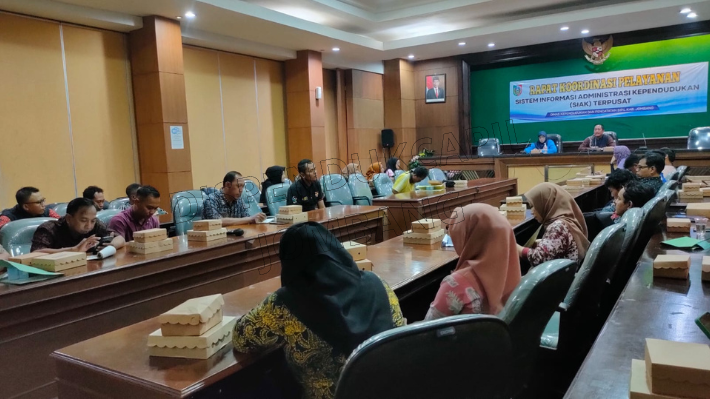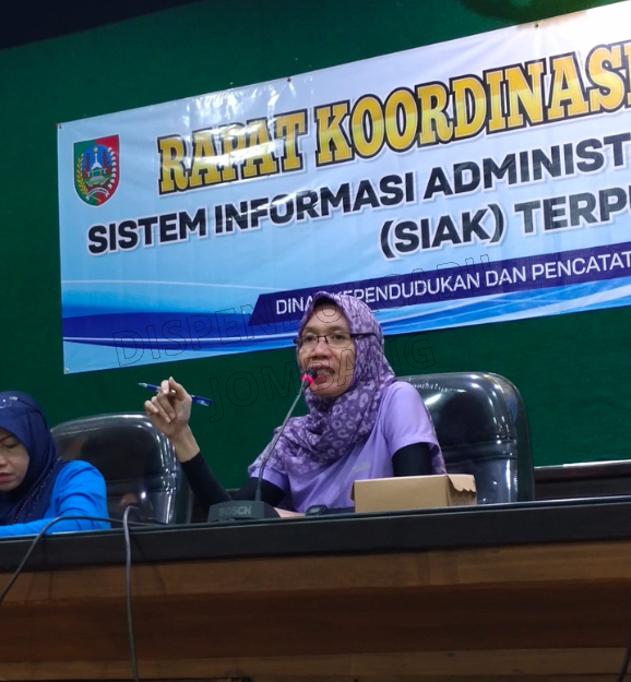 JOMBANG - Dinas Kependudukan dan Pencatatan Sipil Kabupaten Jombang mengadakan rapat koordinasi pelayanan Sistem Informasi Administrasi Kependudukan (SIAK) Terpusat pada Jumat (26/01). Acara tersebut dibuka oleh Kepala Dinas Kependudukan dan Pencatatan Sipil Kabupaten Jombang, Drs. Masduqi Zakaria, M.Si yang dihadiri oleh Sekretaris Dinas Kependudukan dan Pencatatan Sipil Kabupaten Jombang, Dra. Dwi Yudawati, dan Kepala Bidang Pelayanan Pendaftaran Penduduk, Mufattichatul Ma'rufah, S.H sebagai narasumber. Acara tersebut juga dihadiri oleh operator Kartu Keluarga kecamatan serta operator dari Dinas Kependudukan dan Pencatatan Sipil Kabupaten Jombang.